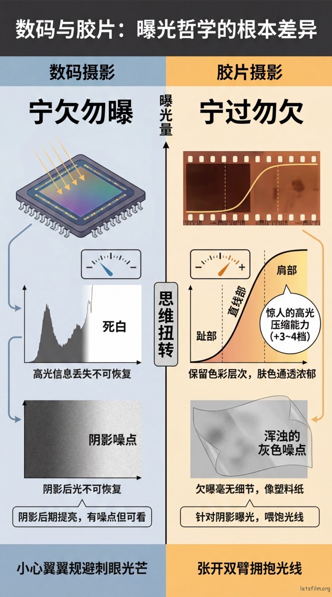 转投胶片时最需要扭转的一个观念,就是关于“宽容度”的方向。