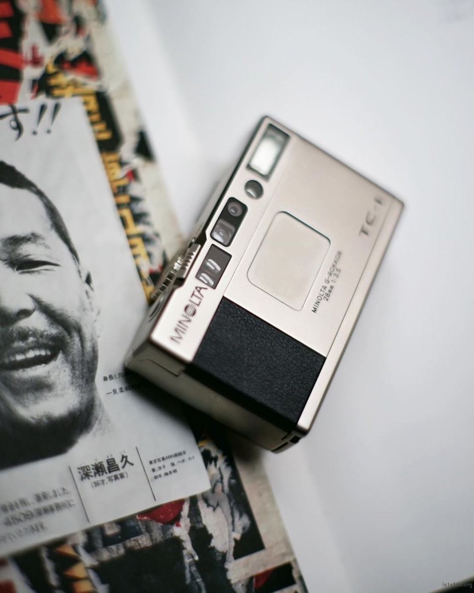 1996 年,美能达发布了 TC-1,这是一台可以被塞进西装口袋里的高端袖珍胶片相机。这在商业上是一件近乎疯狂的事,彼时数码摄影的浪潮已经开始在暗处涌动,胶片工业的黄昏隐约可见,而美能达却倾其光学技术之精华,几乎不计成本的打造了这台“口袋机皇”。