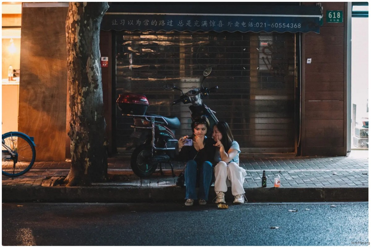 上海深夜的街头总是不会缺少这样的画面,人们坐在路边,不是因为没有别的地方可以去,只是暂时还不想回家。